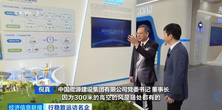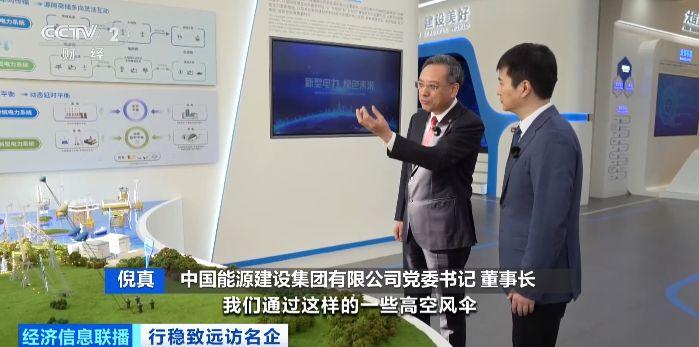 中國能源建設集團有限公司黨委書記 董事長 倪真:我們通過高空風傘,把300米的風能取下來,也是風能發電,但跟傳統的100米高的風能發電比,它是升維升級的。