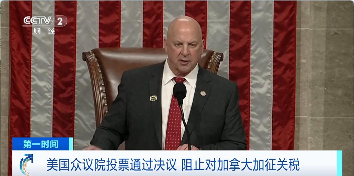 (央視財經《第一時間》)當地時間11日,美國國會衆議院投票通過了一項決議,阻止美國總統特朗普對加拿大加徵關稅。這是共和黨佔多數的衆議院罕見地對總統政策進行公開反對。