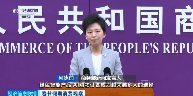 商務部新聞發言人 何詠前:今年春節,科技、年俗、國潮出圈。綠色智能產品、AI購物訂餐成爲越來越多人的選擇,“科技年貨”受到青睞。春節假期,重點平臺智能眼鏡、具身智能機器人銷售額分別增長47.3%和32.7%,古韻國風成爲年輕人的“頂流”之選,中華老字號、“馬年元素”文創產品持續熱銷。入境消費持續升溫。春節期間,衆多外國遊客來華觀光、購物,深度體驗“購在中國”獨特魅力。重點平臺入境遊產品訂單同比增長18.4%,上海、四川離境退稅銷售額同比分別增長1.5倍、3.2倍。