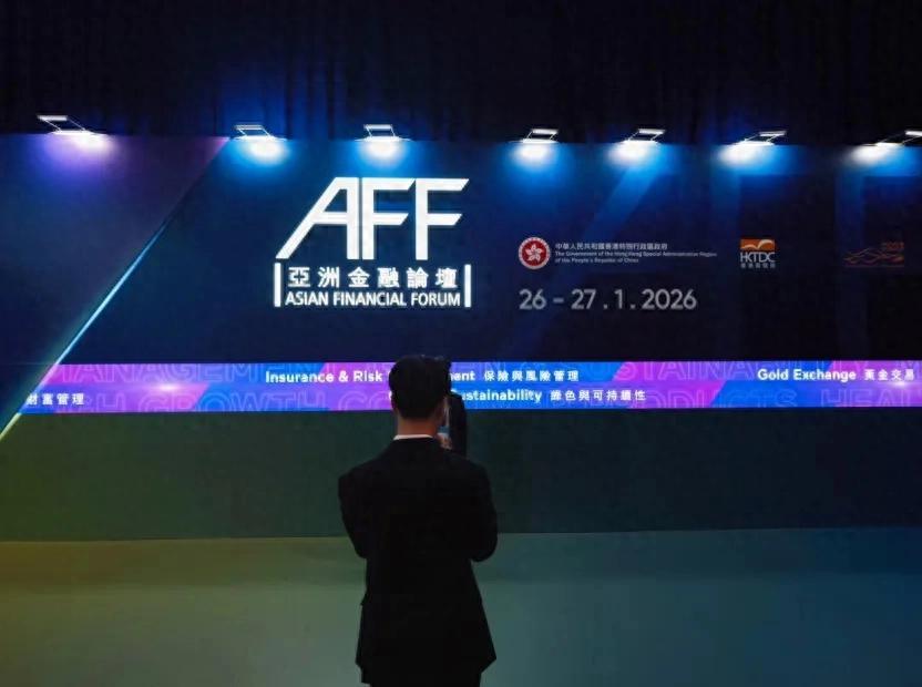 香港特區政府不僅通過《施政報告》勾畫黃金產業發展圖景,亦在多個場合積極推動行業討論。圖爲2026年亞洲金融論壇召開時的重點議題介紹。攝/焦建