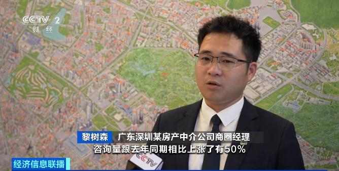 廣東深圳某房產中介公司商圈經理 黎樹森:諮詢量跟去年同期相比上漲了50%,有電話諮詢的,還有進店諮詢。帶看量也明顯提升了,開工的第一天我們店成交了三單,而且每一天陸續都在成交。