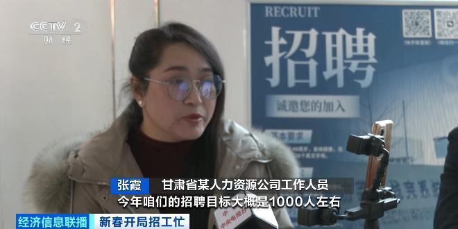 甘肅省某人力資源公司工作人員 張霞:蘇州、杭州、南京這一帶的工廠,今年招聘目標是1000人左右,行業主要有電子廠、電器廠、汽車配件廠、新能源工廠,做新能源芯片、機器人這一塊的居多,工資待遇是在每月5000元到8500元左右。