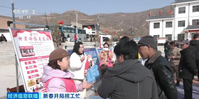 在甘肅省隴西縣菜子鎮的菜子村廣場,春節後的第一場大型招聘會正在舉行。不少招工企業的工作人員一大早就佈置好了展位,忙着跟前來諮詢的各村村民們介紹崗位信息。這家位於隴西縣城的家政公司,今年計劃招聘300人左右。