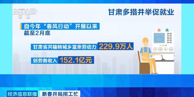 數據顯示,自今年“春風行動”開展以來,截至2月底,甘肅省共輸轉城鄉富餘勞動力229.9萬人,創勞務收入152.1億元;目前,甘肅省已舉辦線上線下招聘活動近1800場次,提供就業崗位90多萬個,輸轉3萬多人返崗就業。