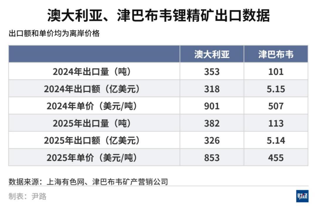 最直接的原因就是價格。根據津巴布韋礦產營銷公司公佈的數據,2024年和2025年津巴布韋出口鋰精礦的單價都在500美元/噸左右。而同一時期,澳大利亞的鋰精礦出口單價爲900美元左右。