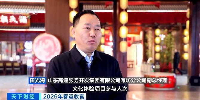 山東高速服務開發集團有限公司濰坊分公司副總經理 田光海:每天都有常態化文化展演,特別是春節期間,文化體驗項目參與人次佔總客流量的三成以上,打造了“快進慢出”的新型服務區經濟,實現了社會效益和經濟效益雙重豐收。