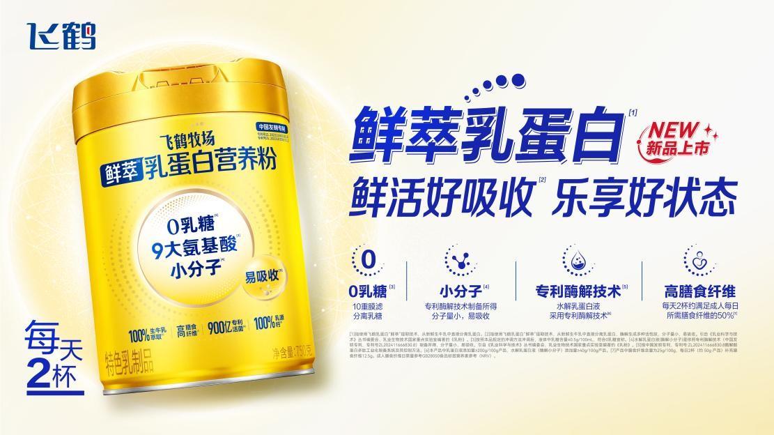 從嬰幼兒營養到全生命週期營養,從奶源把控到核心原料創新,從科研突破到產品落地,飛鶴正持續將多年積累的研發能力與產業優勢轉化爲服務國民健康的系統解決方案。未來,飛鶴將繼續以“用營養傳遞愛”爲使命,圍繞全人羣、全生命週期的營養健康需求,持續深化乳蛋白原料創新和功能營養產品研發,推動更多高品質營養成果走向市場,爲提升國民營養水平、助力健康中國建設貢獻更多乳業力量。