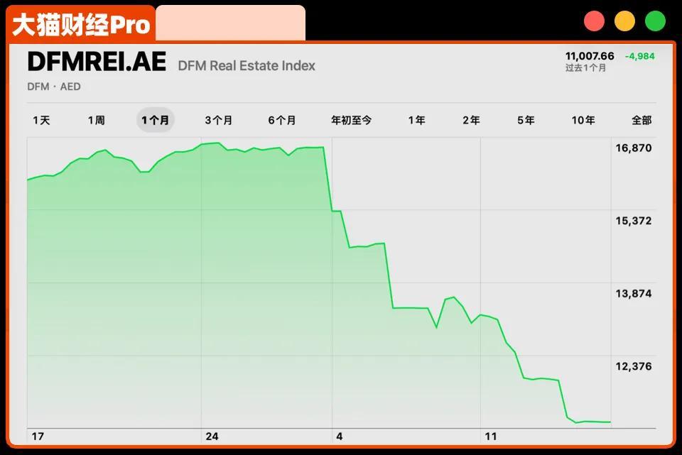 但是,這些導彈和無人機,直接把迪拜的房地產打崩了,迪拜的房地產指數(DFMREI)在過去的半個月,跌了30%+。