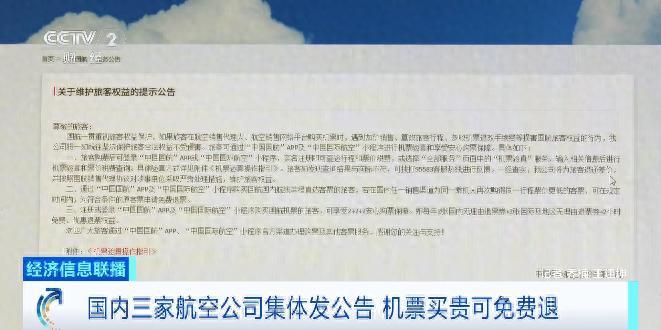 國航公告顯示:通過國航官方渠道購買國航國內航線單程直達客票的旅客,若在國內任一銷售渠道爲同一乘機人再次購得同一行程票價更低的客票,可在規定時間內,爲符合條件的原客票申請免費退票。