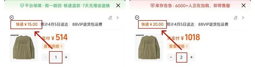 社交媒體上有人諷刺道:“不生產(衣服)了,直接0碳”“請支付我一筆信息閱讀費”。也有消費者對15元定價和多一件加5元的依據提出疑問,認爲發順豐都用不了15元。抵制行爲也伺機而動,有人表示“以後專拿你們家湊單”,利用下單秒退讓商家承擔推廣與運營成本。