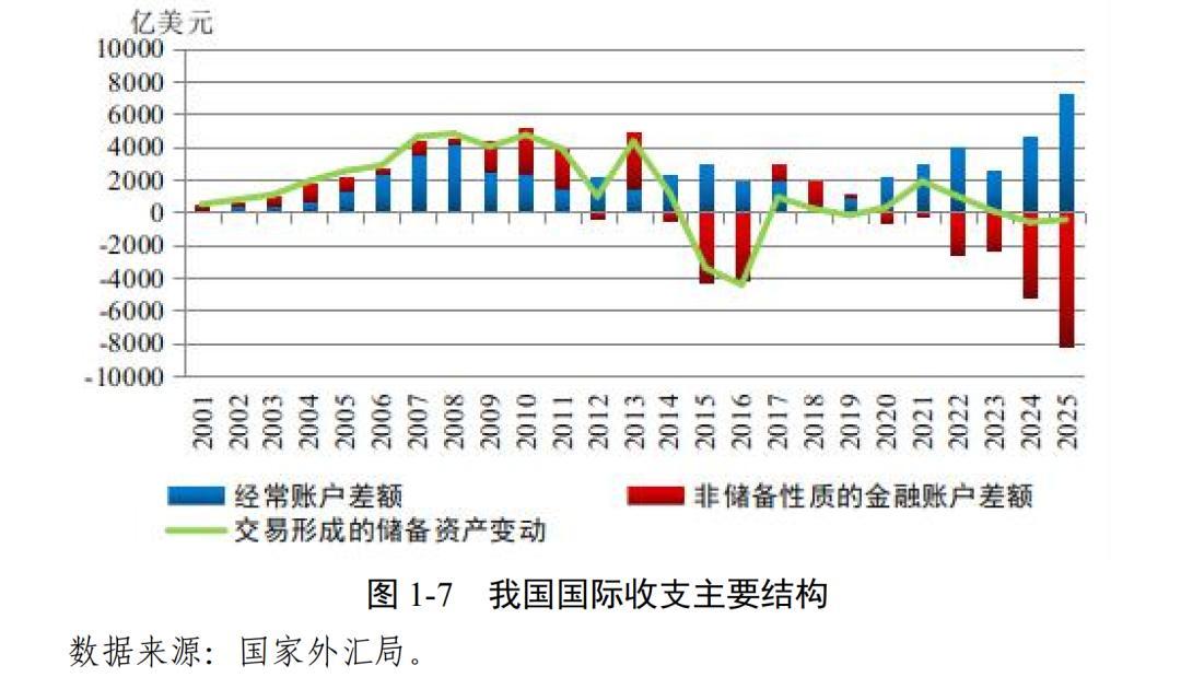 《2025年中國國際收支報告》顯示,2025 年末,我國對外金融資產和對外金融負債分別爲11.8萬億美元和 7.7萬億美元。