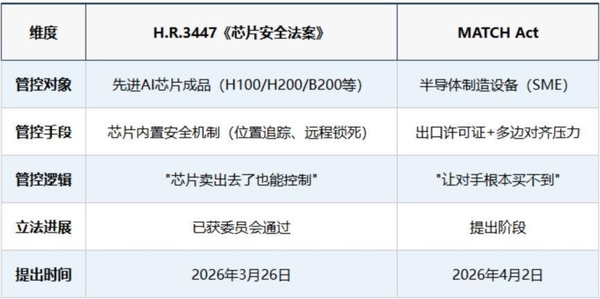 2026年4月2日,美國共和黨衆議員邁克爾·鮑姆加特納聯合兩黨議員,正式提出《硬件技術控制多邊協調法案》,簡稱《MATCH法案》。
