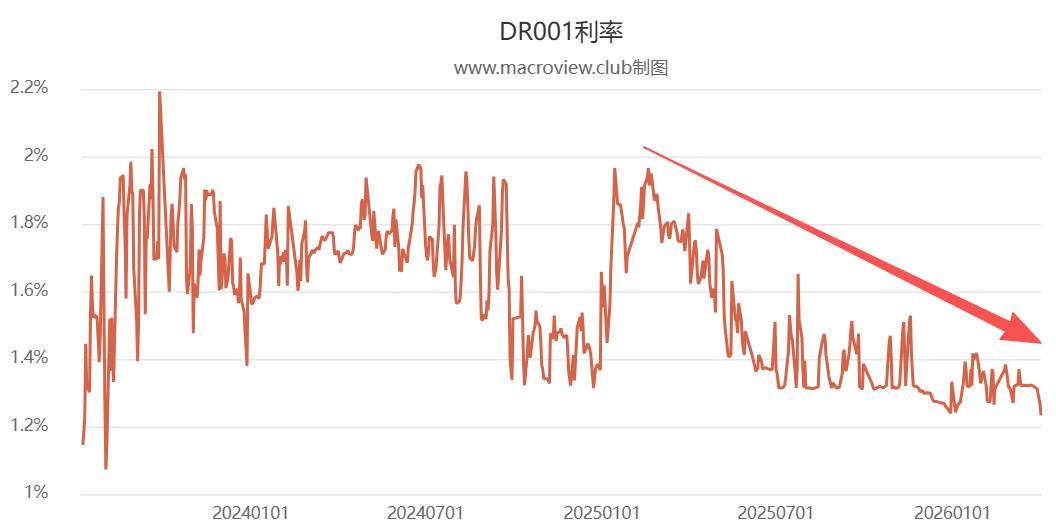 以DR001(銀行間市場隔夜質押式回購加權平均利率)爲錨,年初以來持續下降,4月份以後,甚至不斷跌破1.3%。