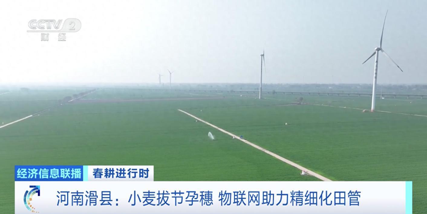 (央視財經《經濟信息聯播》)河南安陽市滑縣的180多萬畝小麥陸續進入拔節孕穗期。這是小麥需水需肥、決定穗粒數的關鍵階段。當地使用物聯網技術賦能麥田春管,讓農田得到精細化管理。