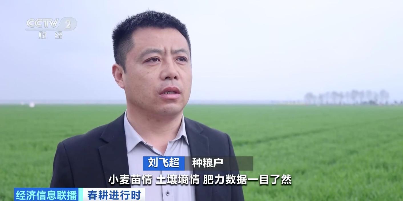 種糧戶 劉飛超:以前澆水靠經驗,(現在)打開物聯網平臺,小麥苗情、土壤墒情、肥力數據一目瞭然。系統智能測算出澆水時間和澆水用量,智能灌溉設備也能自動執行。1800畝地澆水時間比以前省了3天多,水肥利用率提高了20%,成本也降了不少。