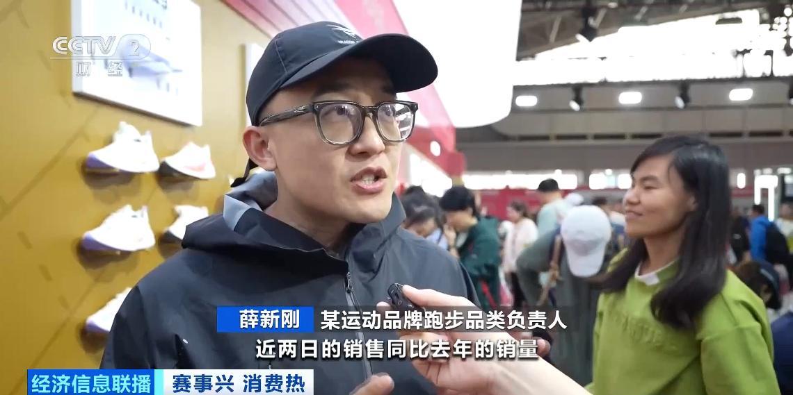 某運動品牌跑步品類負責人 薛新剛:近兩日的銷量同比提升200%,鞋賣得會更好,佔整體銷量的60%。