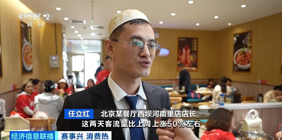 北京某餐廳西壩河南里店店長 任立紅:這兩天客流量比上週上漲50%左右,高峯時段跑友就餐人數佔就餐人數的80%以上。