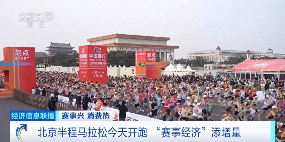 (央視財經《經濟信息聯播》)“辦一場賽、熱一座城、活一方經濟”,近年來,賽事經濟的“乘數效應”正在多地清晰地顯現出來,賽事引流、留客、轉化的完整價值鏈正在形成。今天(12日),2026北京國際長跑節-北京半程馬拉松在天安門廣場鳴槍起跑,22000名跑者共赴春日之約,帶動城市消費熱潮。
