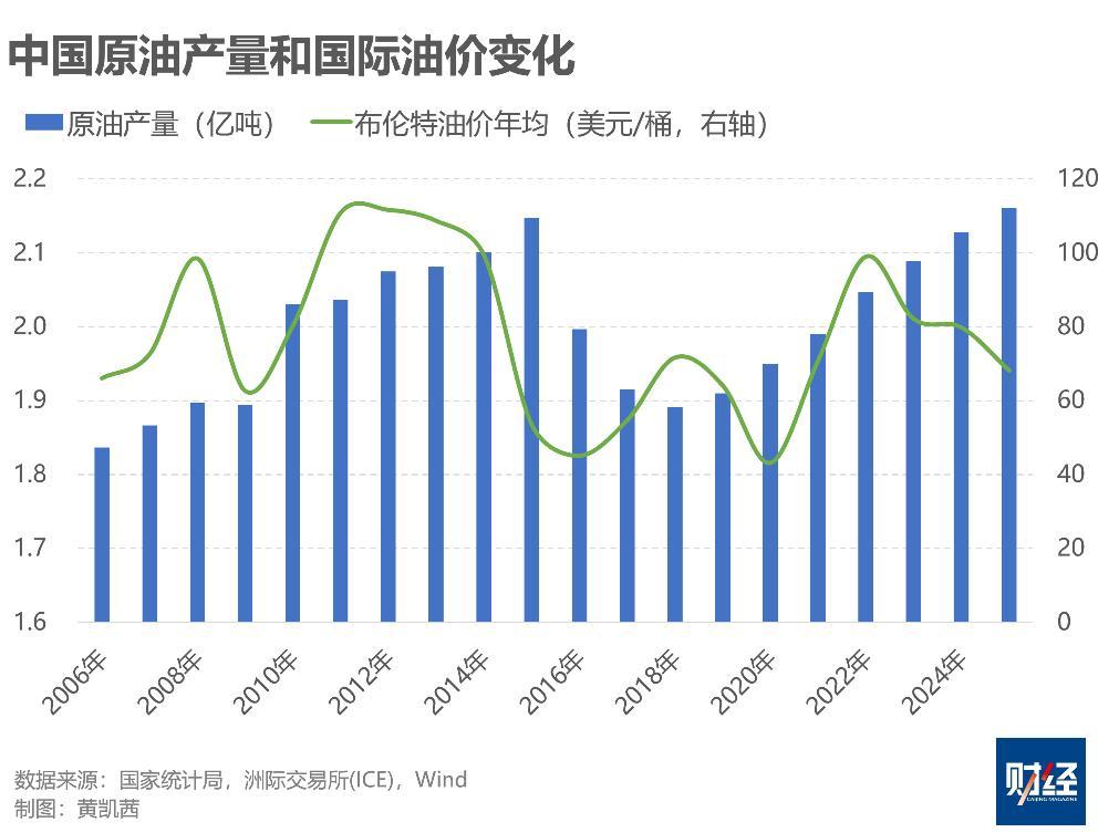 2019年,爲扭轉國內原油產量連續三年的下滑勢頭,中國政府推動實施增加儲量、提高產量的油氣增儲上產戰略,要求石油企業要落實主體責任,大力提升油氣勘探開發力度。到2025年“七年行動計劃”收官時,全國原油產量已從2019年的1.92億噸增加至2.16億噸,創歷史新高,連續四年穩定在2億噸以上;天然氣產量從1753.6億立方米增加至2619億立方米,連續九年增產超過100億立方米,增產潛力比原油更大。