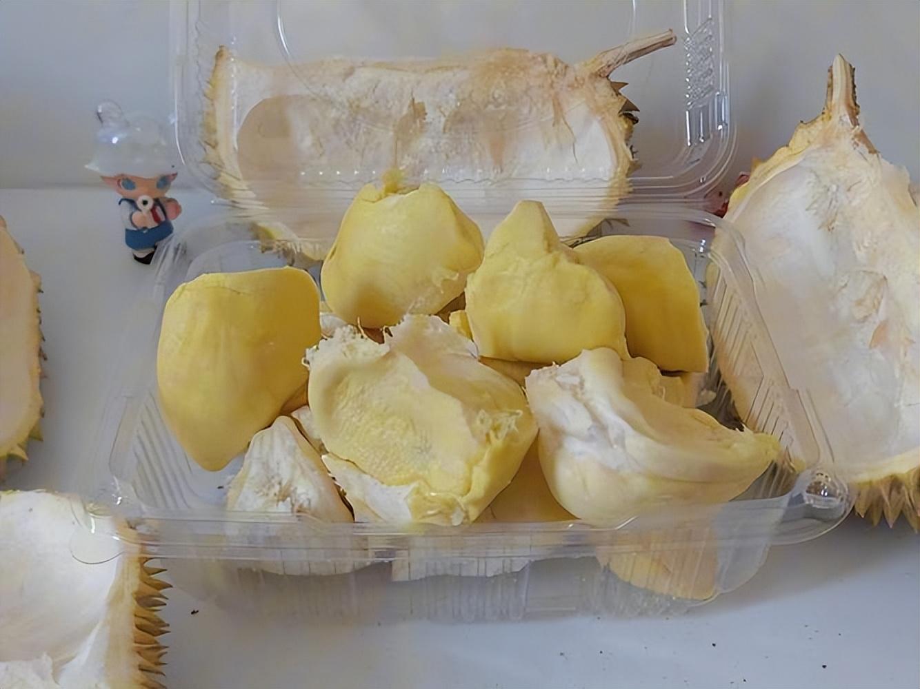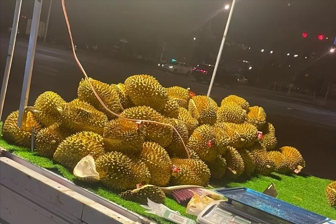 榴蓮是 “水果之王”,價格不低。有些攤位擺着剝好的榴蓮肉,裝塑料盒裏賣,比整顆便宜不少,老闆還說 “剛現剝的,划算”。
