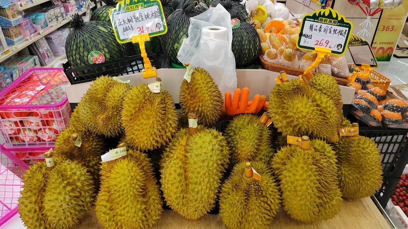 買榴蓮還得選整顆的!看果殼顏色均勻,捏果刺有彈性,掂着沉、聞着有淡香的,準是又香又糯的好榴蓮。