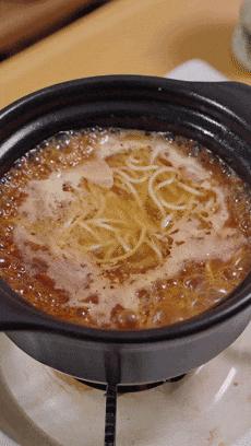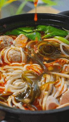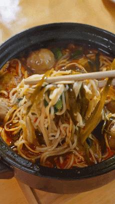 煮米線的湯別浪費,原湯化原食。再把之前煮過的米線放進去,小火慢慢地煮5分鐘,既能收汁還能入味。