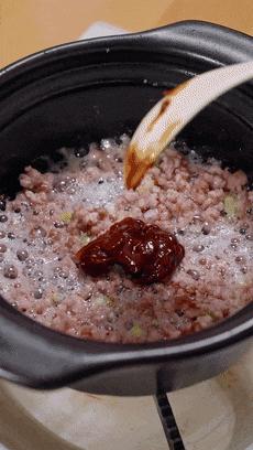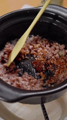 這裏用的肉末你們可以稍微帶點肥的,煸炒出油脂之後加上薑末、蔥花就特別香了。