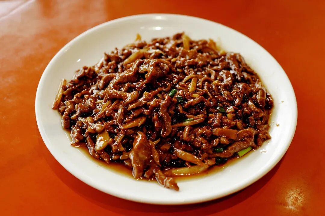 生薑炒牛肉下飯王者!用的是嫩薑絲,嫩薑絲辛辣爽脆卻毫無老薑的燥烈,只留一抹清新爽口。牛肉很嫩,被鹹香的醬汁包裹,簡直是米飯的“天敵”,一筷子牛肉就能輕鬆炫掉大半碗飯。