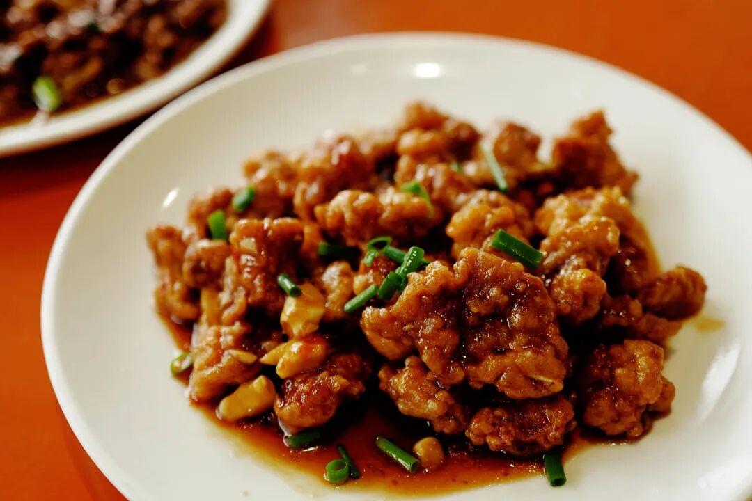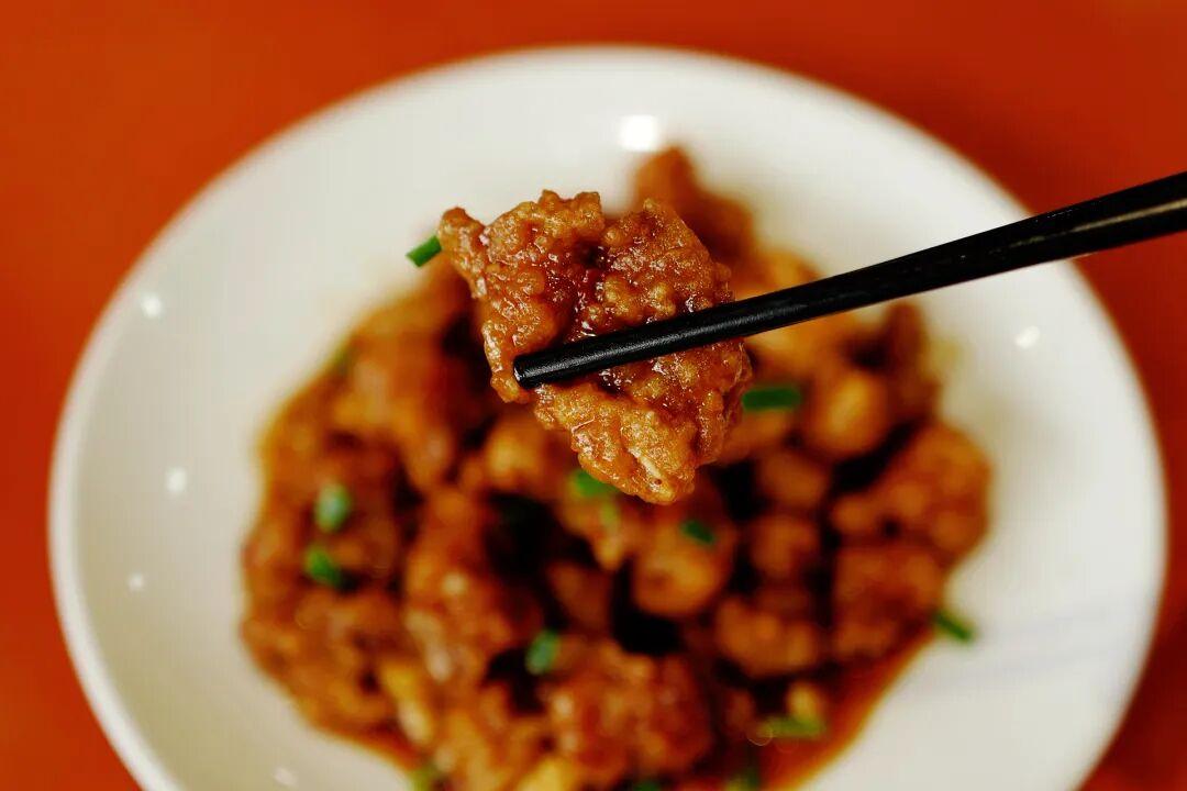 招牌菜糖醋排骨,排骨裹粉漿炸酥炸脆,再放入精心熬製的糖醋汁中快速翻炒,每一塊排骨都均勻地包裹上了晶瑩紅亮的醬汁。