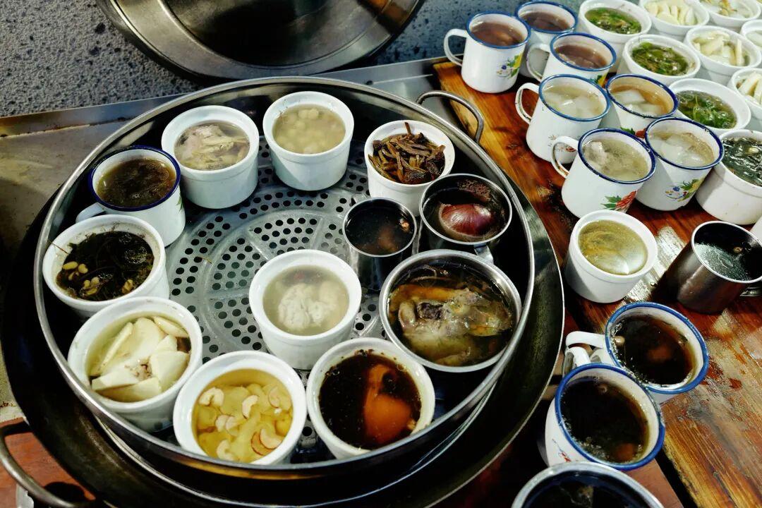 小腸、烏雞、排骨、墨魚、鴿子……食材特別豐富,還會搭配不同的藥材、乾料,可以根據自己的體質口味選擇。整體喫的就是一個本味鮮香,只加了少量的鹽,晚上來一碗還是蠻落胃的。
