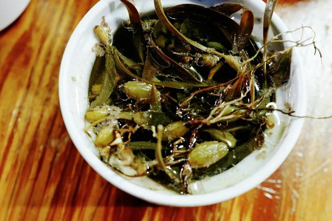 “凍菜”不是“冷凍的蔬菜”,而是用海石花之類的海菜,熬煮冷卻後製成的天然果凍。