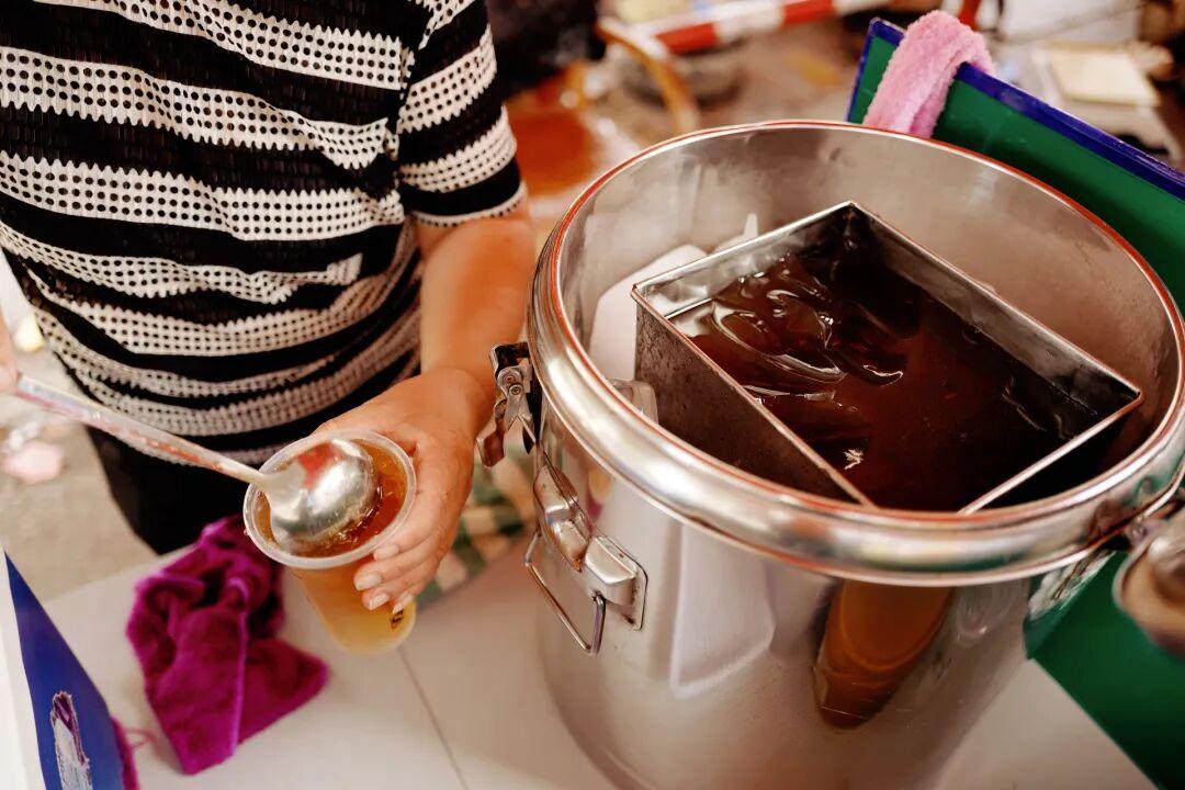 喝的時候加上蜂蜜和薄荷水,清涼消暑甜絲絲的,尤其是薄荷的味道,特別舒爽。我在福安的兩天,每天下午都要去找大姐買一杯喝。