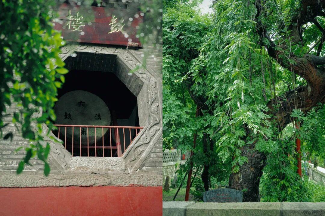 寺廟爲四進院落,進院後,兩側鼓樓相對而立。第三進院落是寺廟的主殿:“大雄寶殿”,大殿後院的松樹據傳爲六朝時期所種植。