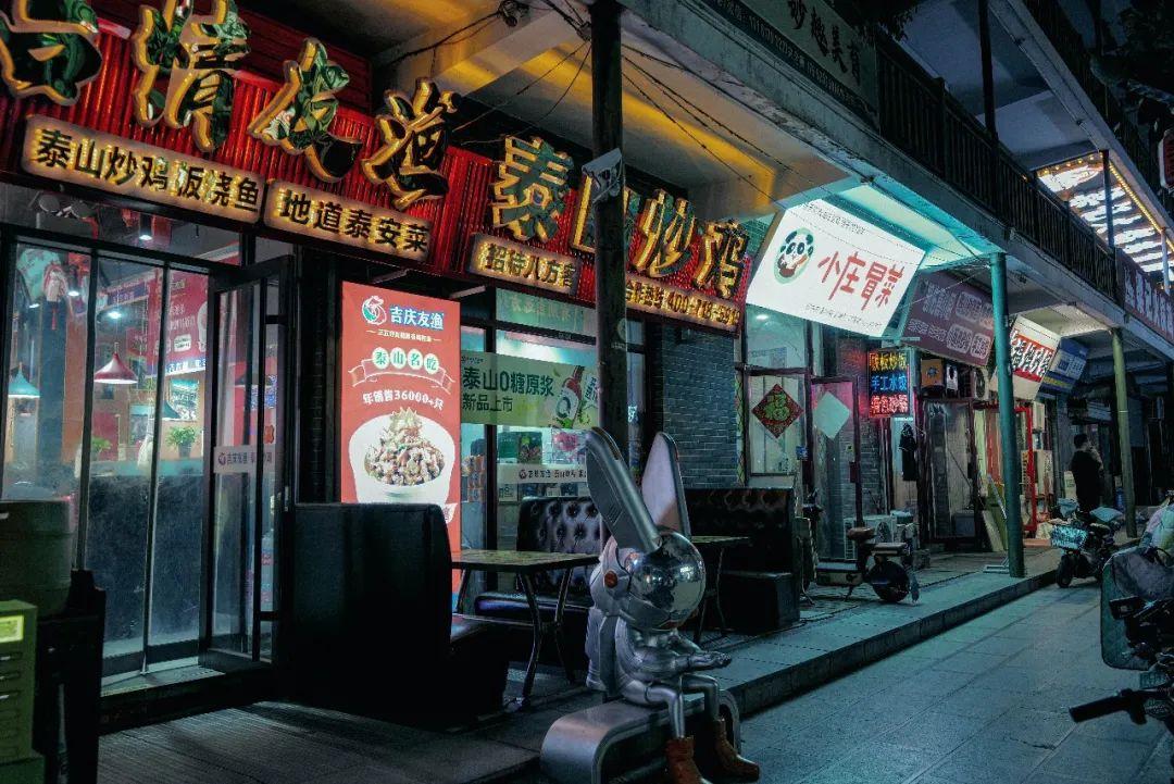 外表雖是古樸的府宅樣式,進入大門後卻發現裏面燈紅酒綠,全是花花綠綠的餐飲招牌,某種意義上也算古今結合了。