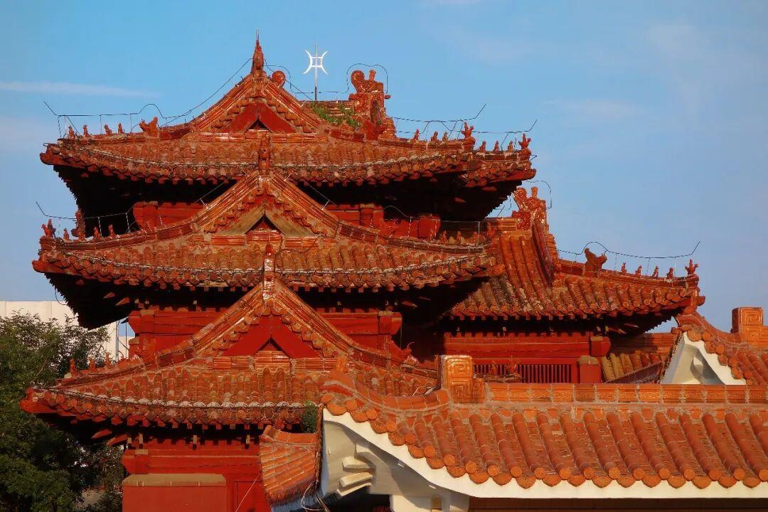 因此岱廟的建築格局是按王宮樣式來的,而且合乎八卦方位,四角分別建有巽、艮、乾、坤四座角樓。
