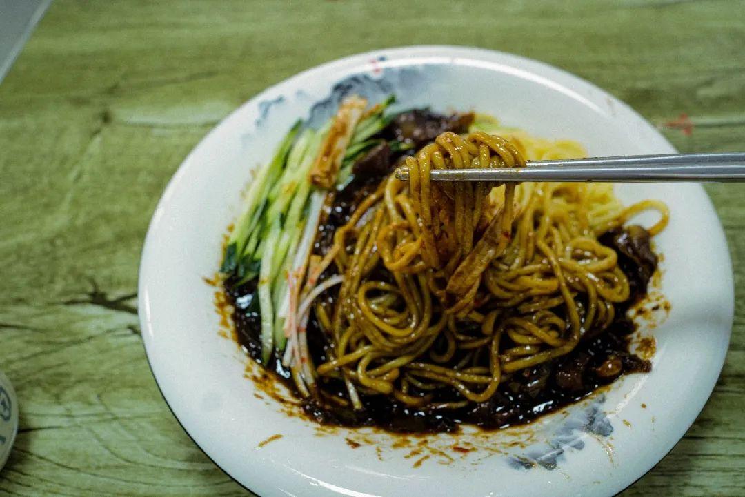 向店主詢問這個百年炸醬的由來,阿姨告訴我他家的炸醬是從韓國一家有百年曆史的店裏帶回來的。