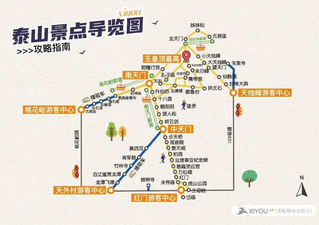 現在登泰山的話現在可以分爲四個入口三條索道,入口分別是紅門,東御道,天外村,桃花峪。