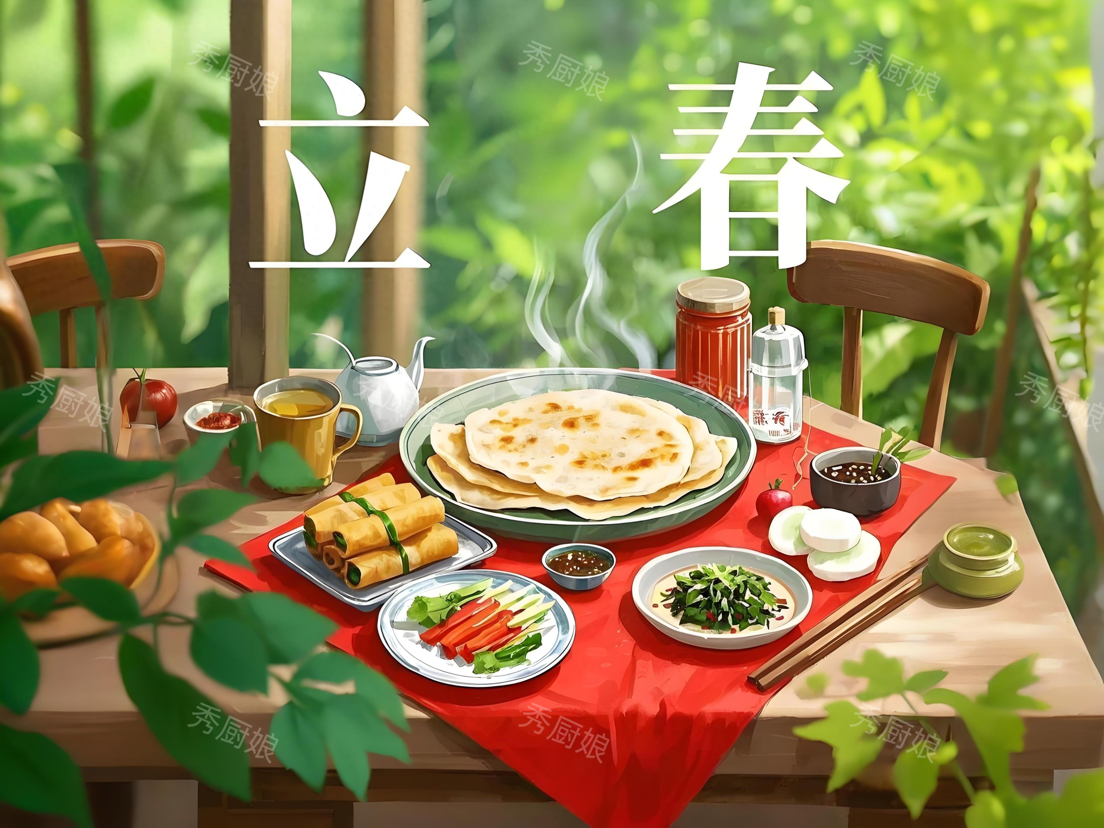 春盤裏卷什麼?蘿蔔、韭菜、豆芽、菠菜、粉絲,再攤個雞蛋皮切成絲,五顏六色碼齊了,用薄餅一卷,咬一口,脆的嫩的香的辣的,全在嘴裏爆開。這叫"五辛盤",辛辣生陽,正好順着立春的陽氣往上提勁兒。喫春盤有着迎新的意思,也有祛邪除病之義,祈求“新的一年身體健康”。
