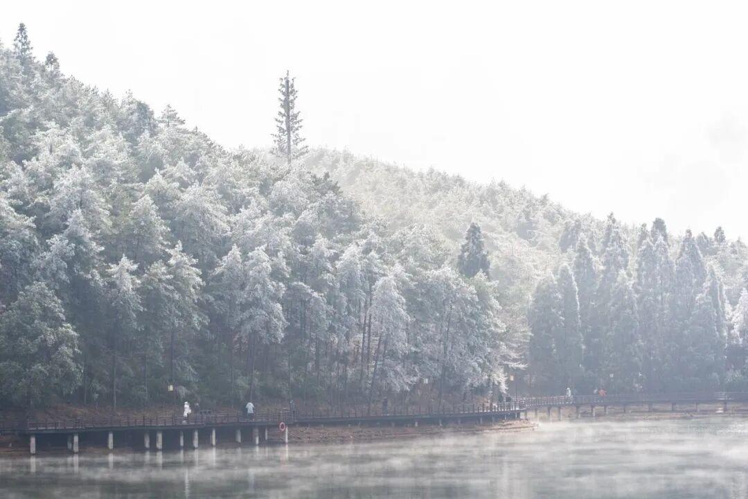 宜春的主要旅遊資源分佈在西南角,這裏有一個鎮叫溫湯鎮,距離市區開車40分鐘左右。一座俠氣十足的明月山佇立於此,冬季降雪後直接美成仙境;