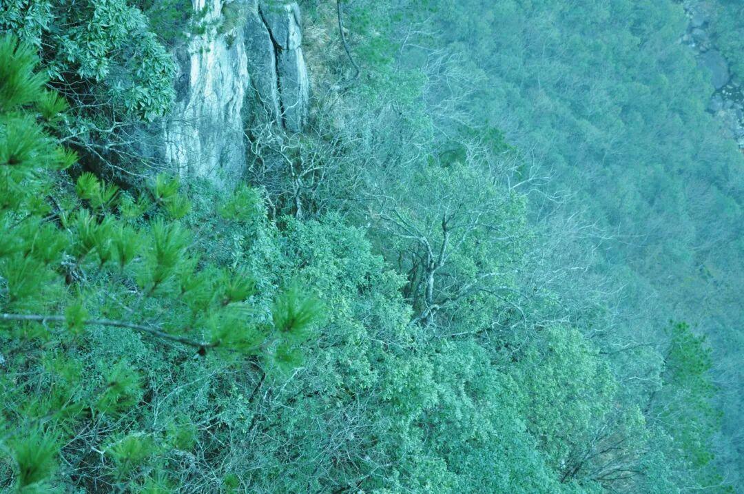 這條青雲棧道曲折蔓延的盤繞在峭壁之間,恐高人羣甚走。在棧道上低頭望去,深不見底的山谷和如螞蟻般渺小的樹冠盡收眼底。還真有一種恐懼感。