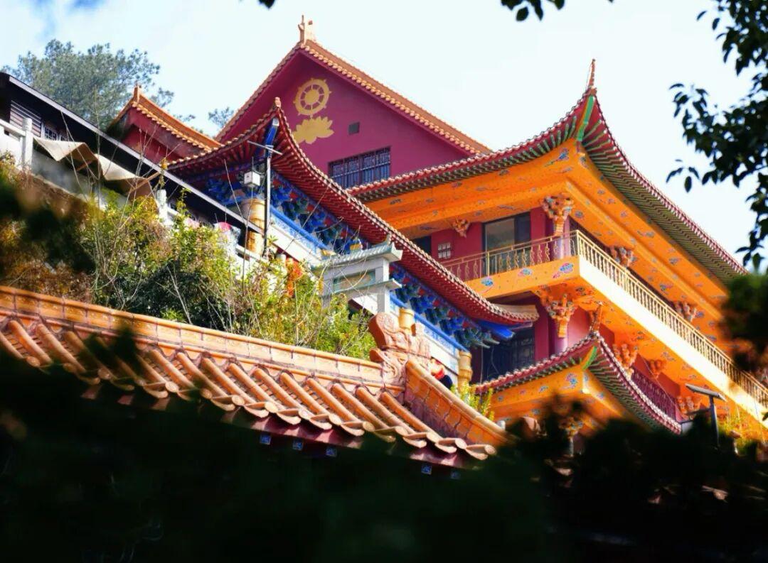 寺廟不大,但“五臟俱全”,煙火也很旺。整體的建築採用仿明清建築風格,飛檐碧瓦,朱牆花牖,與蒼翠山岩融爲一體。
