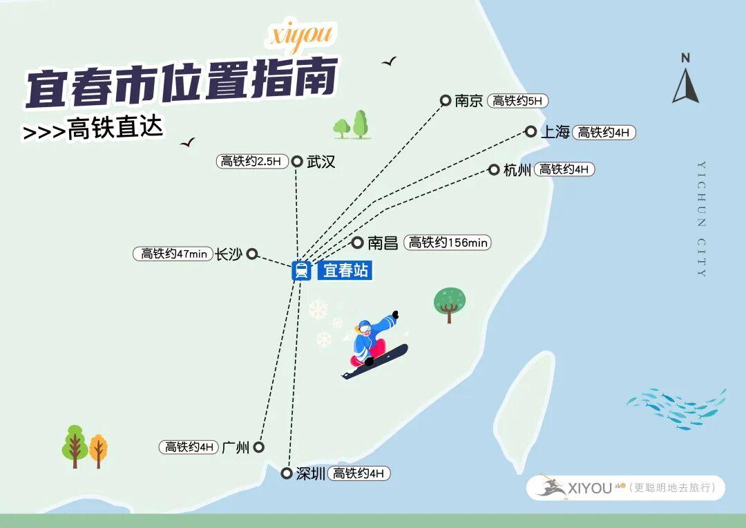 宜春地處江西省靠北一點的位置,是南昌、長沙、武漢三個省會城市的中心位置,所以,從這三個城市以及其周邊城市來宜春都不遠,坐高鐵在1h-2.5h之間。
