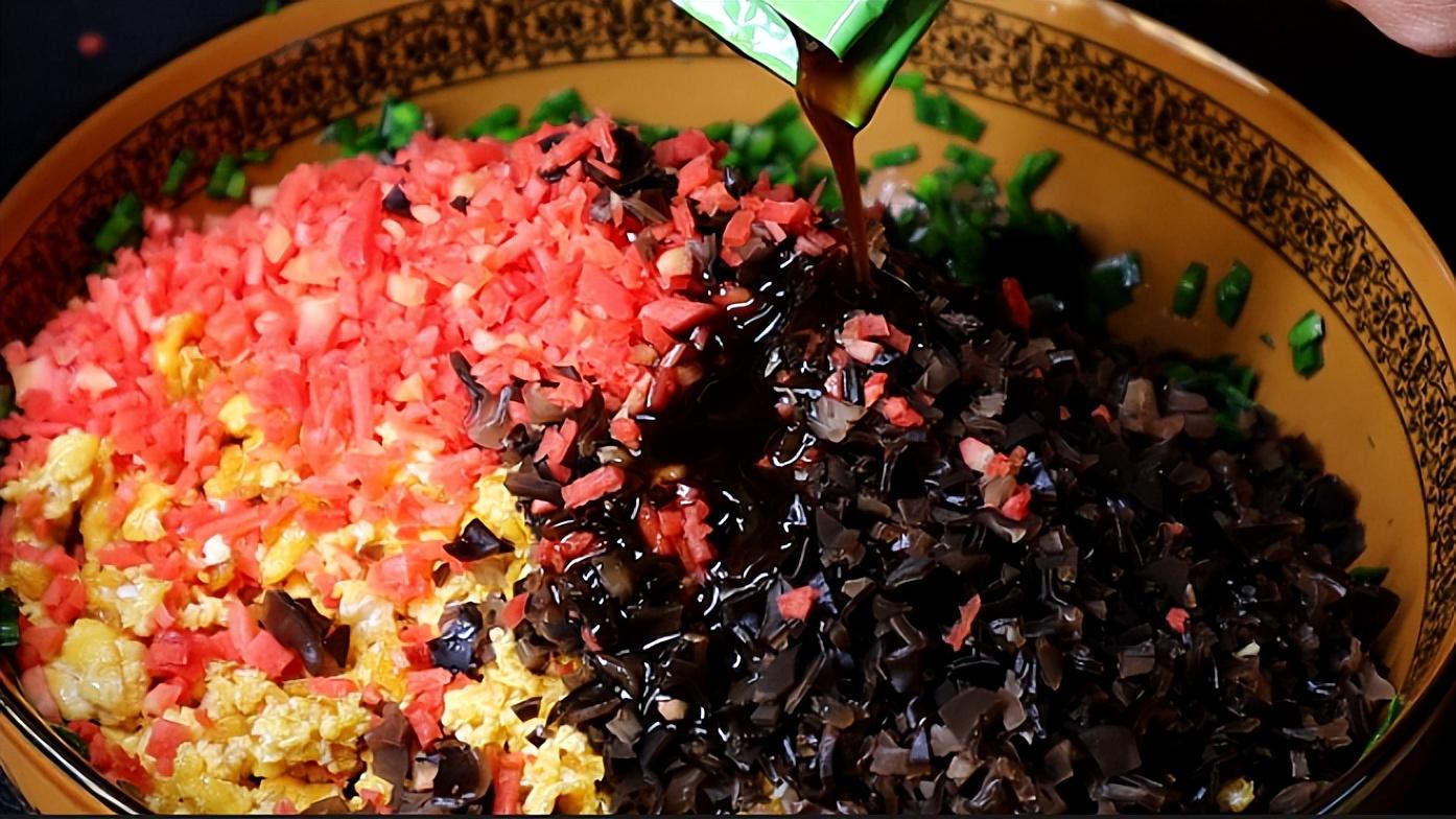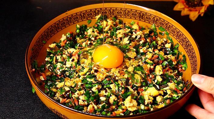 5、最後一個重點就是包之前一定要往餡裏打一個生雞蛋,這個方法就是韭菜喫着不燒心的關鍵。