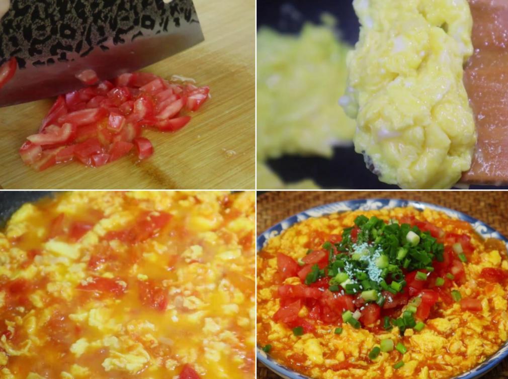3、不用洗鍋,直接倒入西紅柿塊翻炒,加少鹽,西紅柿更容易出汁,然後倒入炒好的雞蛋,把它翻炒均勻,淋上一點水澱粉,把它炒到微微粘稠就可以關火出鍋了。