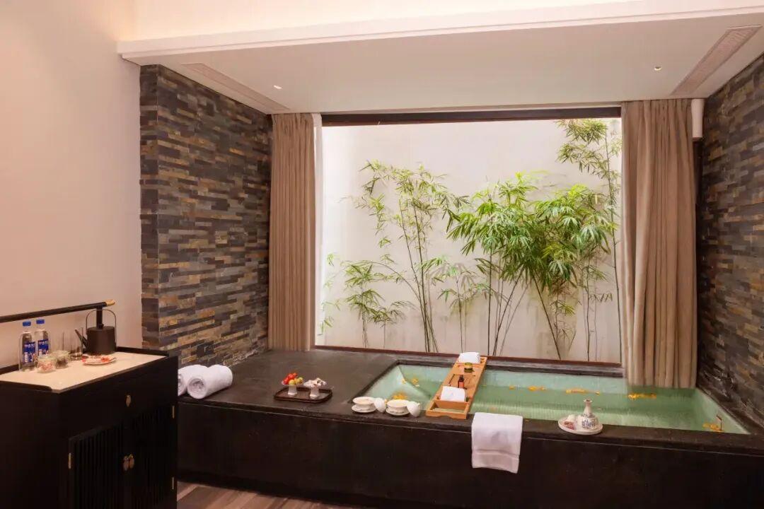 這家我之前住過,酒店有部分房型有私湯泡池,這個泡池還挺有感覺的。然後酒店內用了很多傳統福建元素,茉莉花茶、大漆、建盞等等,整體體驗很好。