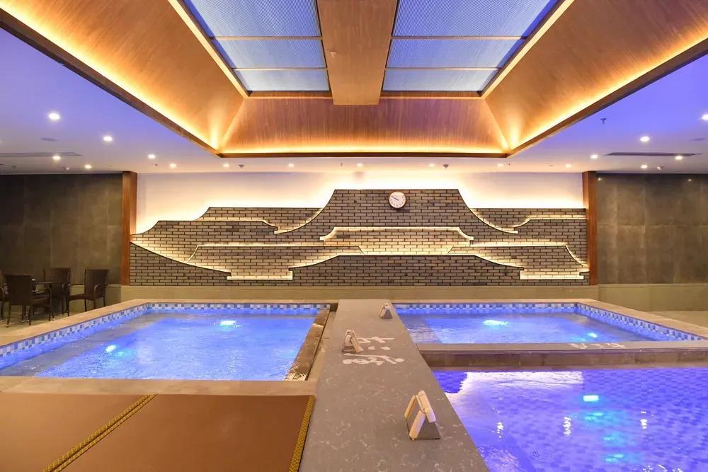 它的亮點是酒店的溫泉中心,溫泉區域不小的,除此之外還有13000㎡的室內休閒館,泡湯之外還可以玩情景劇本殺、遊戲機,我覺得是福州溫泉的2.0版本了。