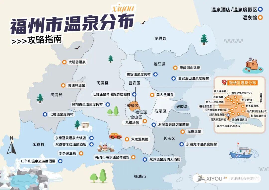 福州幾乎全境都有溫泉,我們先來明確位置。