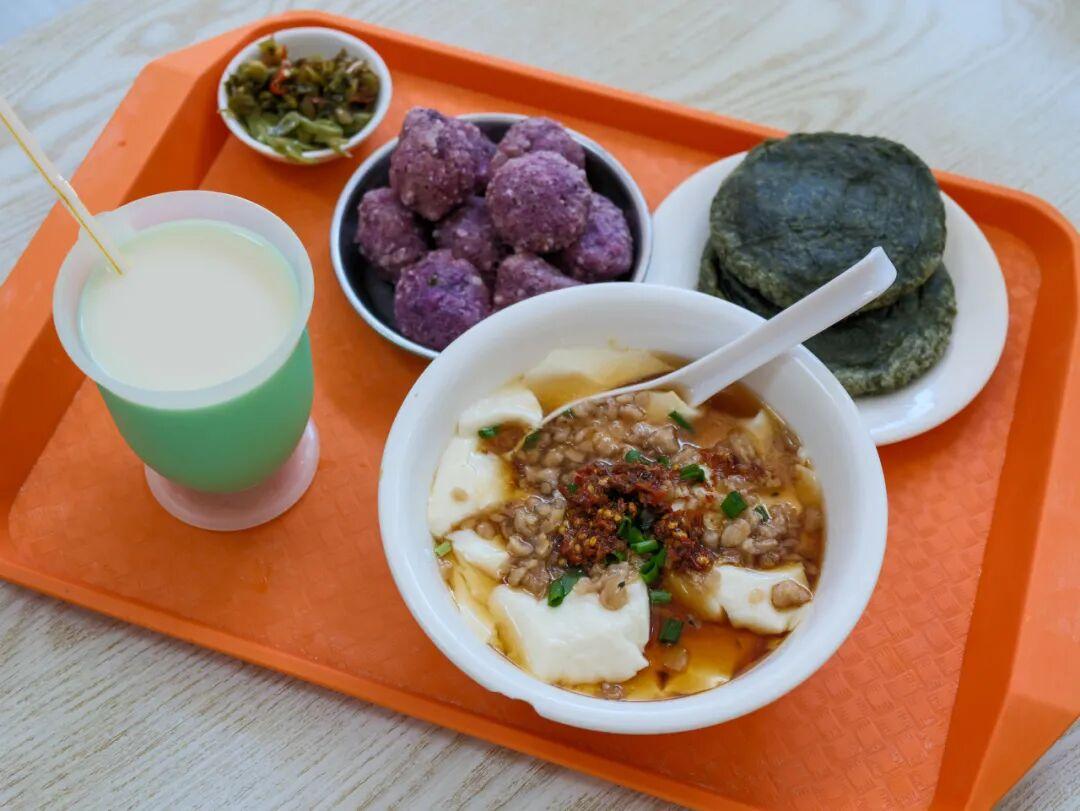 這家店早餐品類很全,招牌是豆漿豆腐腦和各種贛南小喫。還有個隱藏菜單,龍南蒸粉+牛肉醬。觀察了本地人的喫法,一杯豆漿,一份蒸粉,就是早餐標配。
