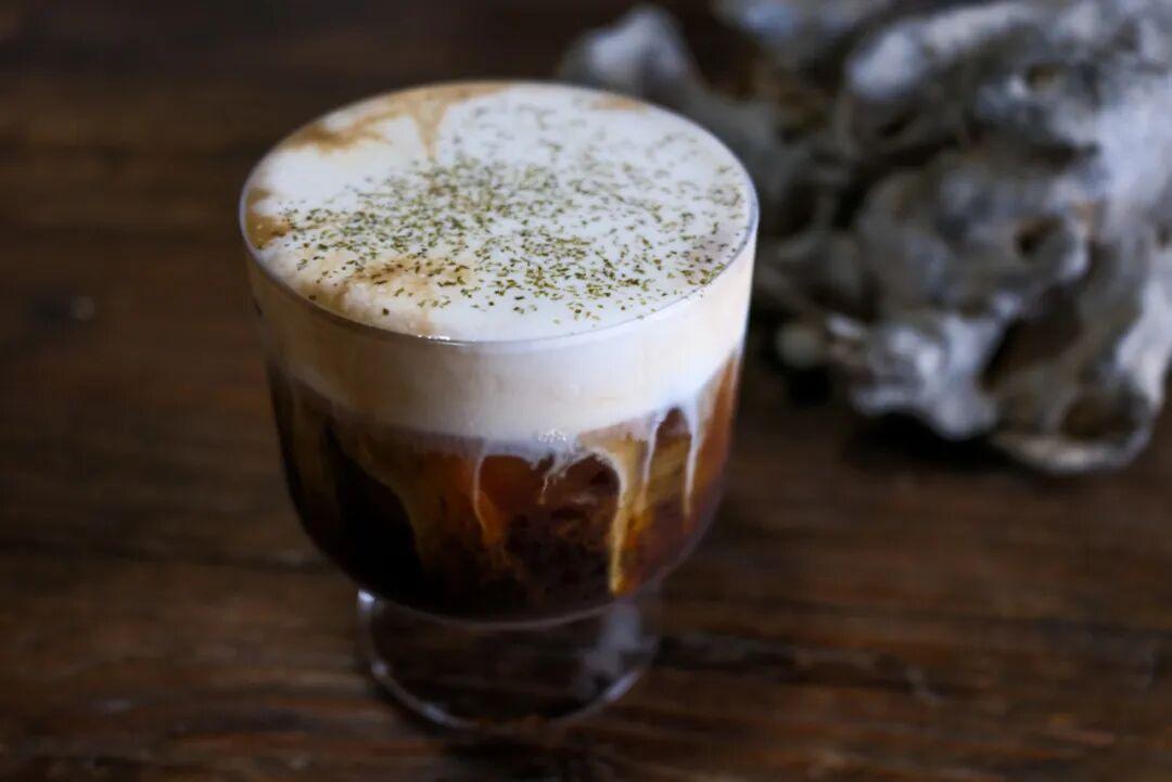點了杯鹹芝士冰美式,顏值和味道都在線。這家咖啡店的磁場很強,點杯咖啡、點塊小蛋糕,就能坐一下午。