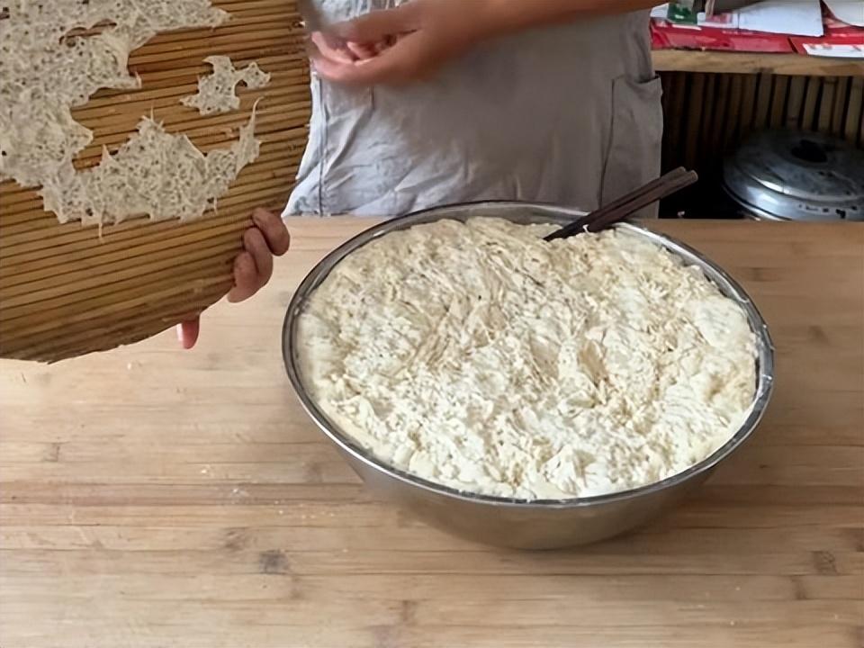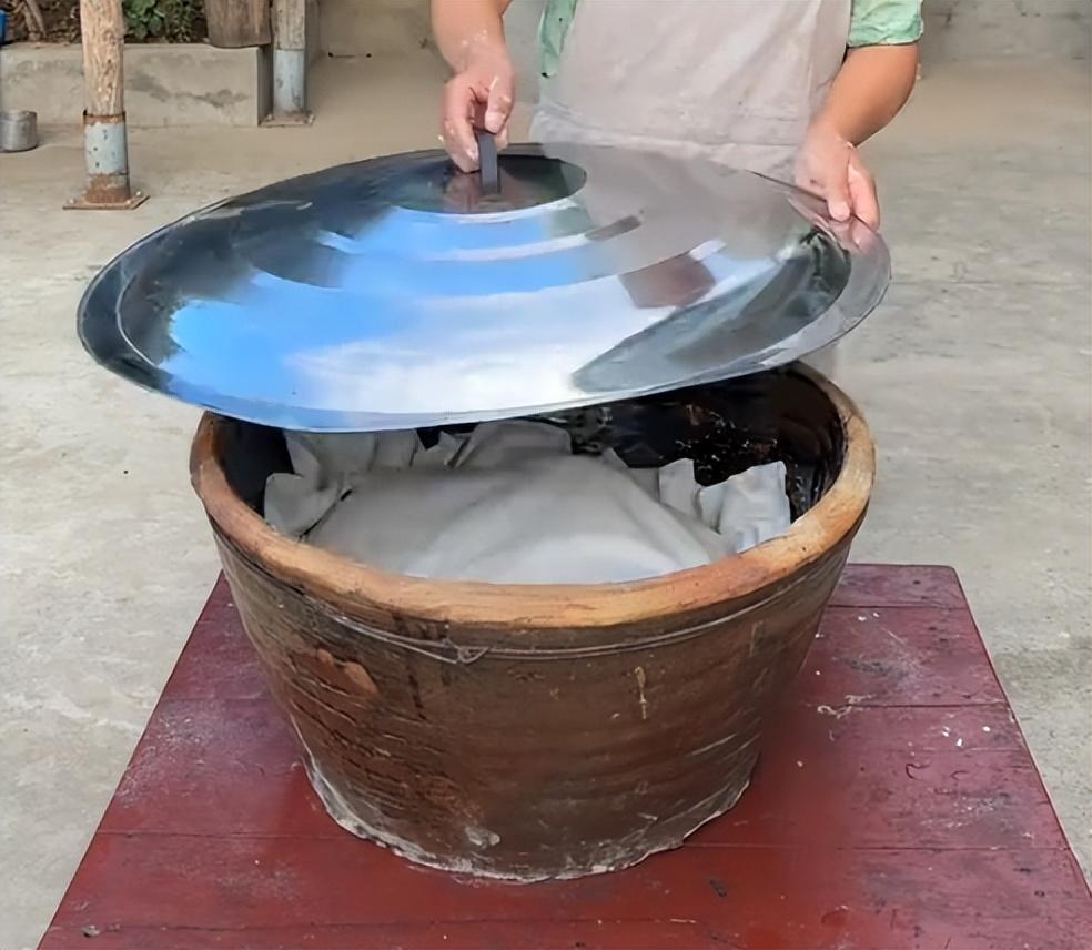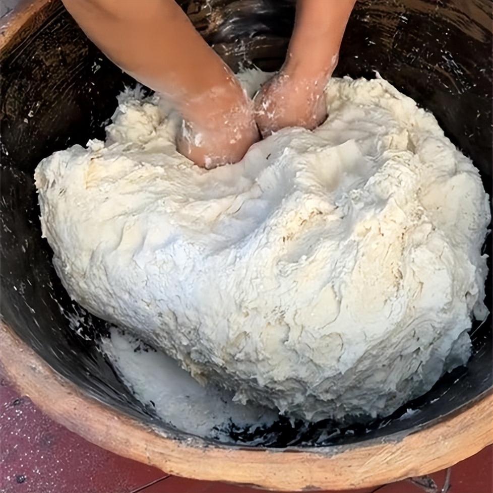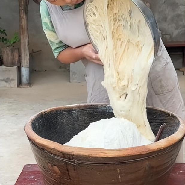 13、蓋上幹籠布二次醒發1小時左右,醒發完成後,拿走一塊當成老酵子,放到麪粉缸裏或者冰箱裏冷藏。